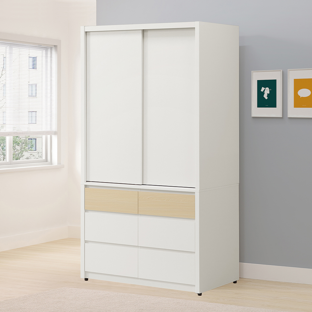 【唯熙傢俱】羅伊原木雙色3.5尺滑門衣櫃
