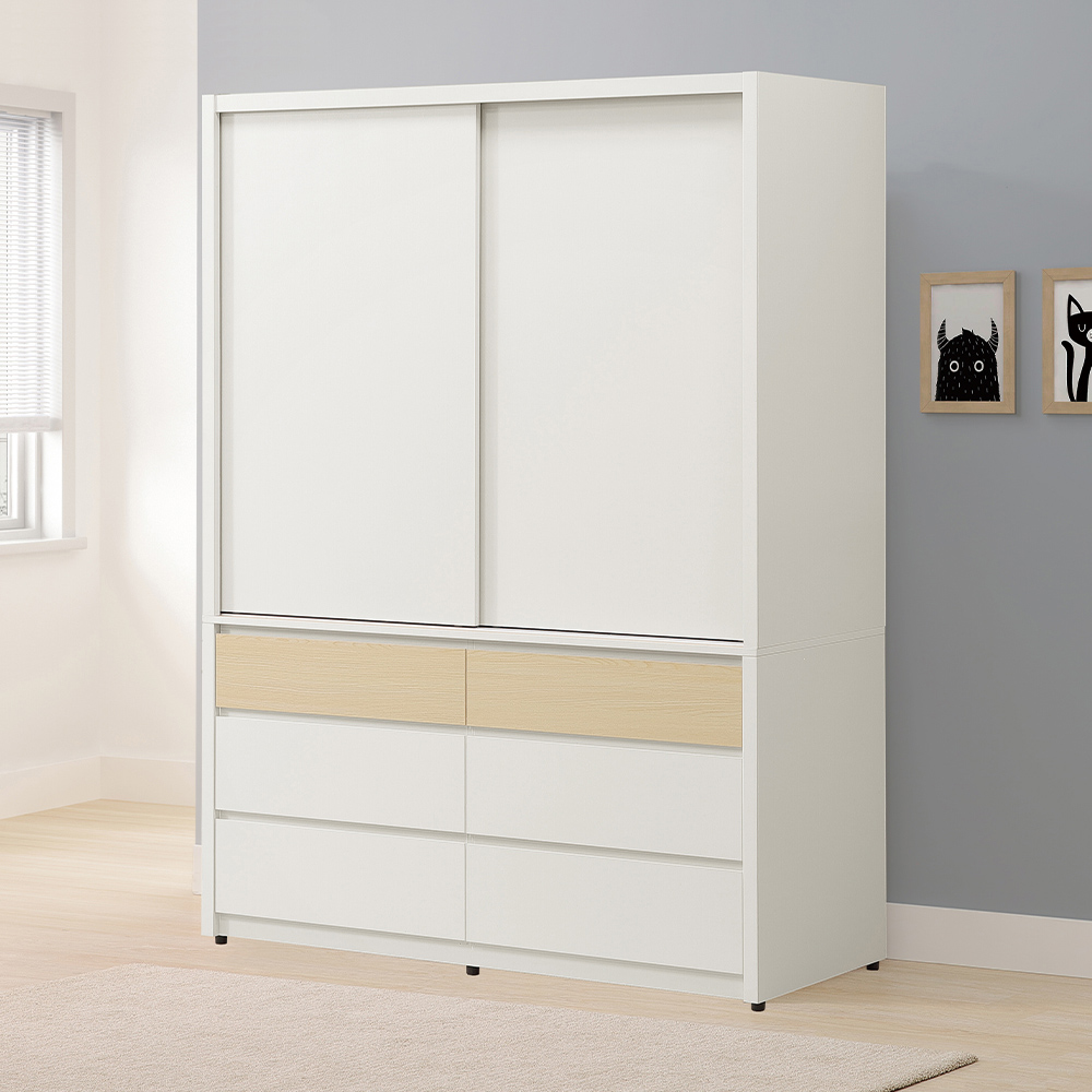 【唯熙傢俱】羅伊原木雙色4.5尺滑門衣櫃