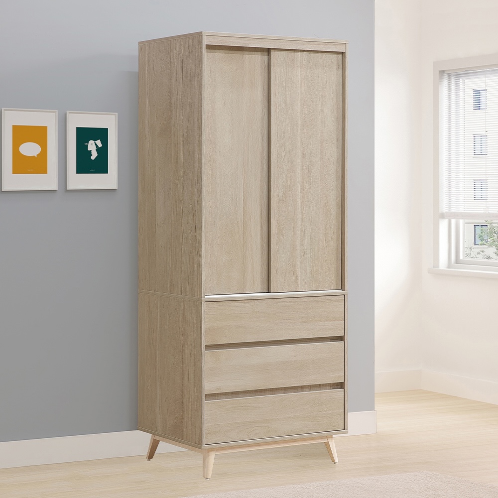 【唯熙傢俱】曼蒂橡木色2.7尺滑門衣櫃