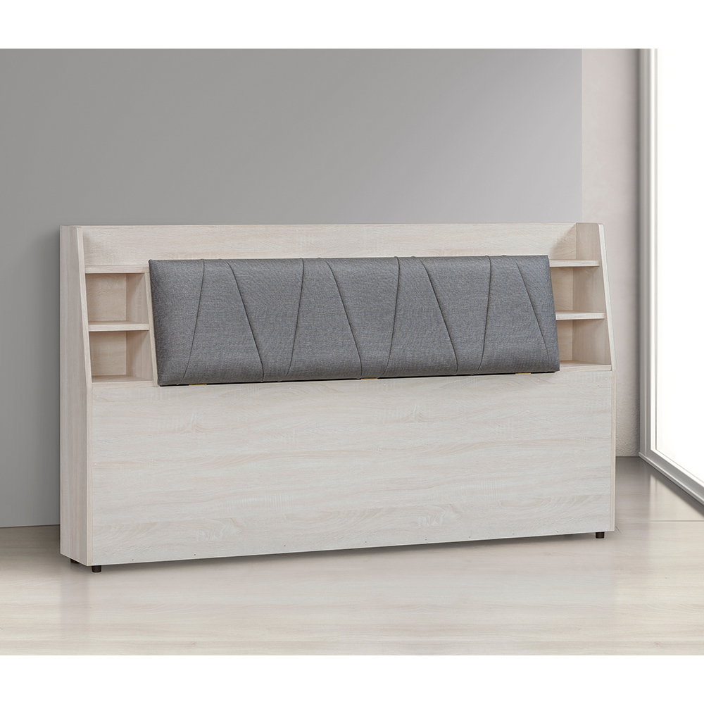 優質材質:採用木心板板材製成,優雅的米白色木紋搭配灰色皮質靠枕,質感細膩,展現床頭箱的舒適感及耐用性。