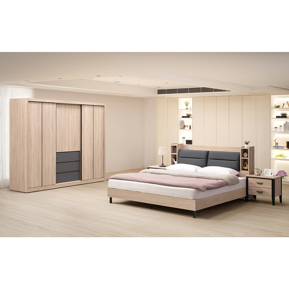 收納功能:兩側配置開放式置物格,能收納睡前讀物、耳機,也能擺放時鐘或香氛;寬敞的箱型大容量底層,適合放置大型寢具或玩偶。床頭箱的功能完美整合於床架中,節省空間且提升生活便利性,讓隨手拿取物品變得優雅自如。