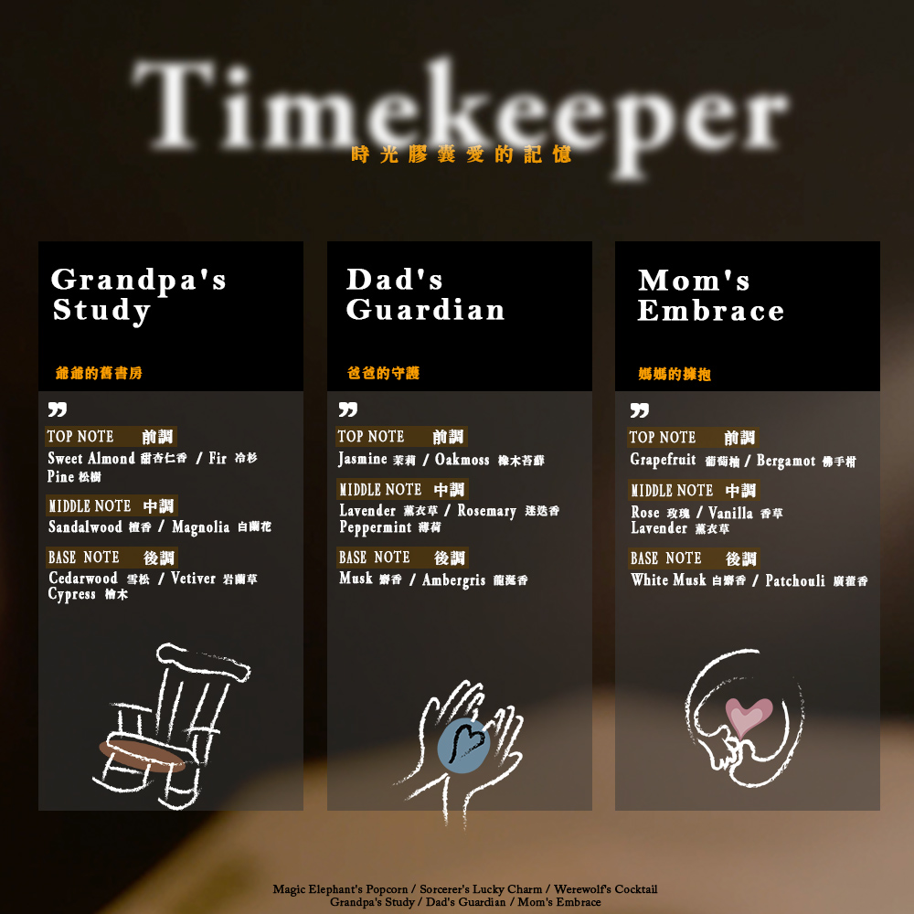 如同時光機,載著我們回到最溫暖的時刻,媽媽的擁抱、爸爸的守護、爺爺書房的書香……每一款香氛,都是愛的縮影,讓時間停駐,讓回憶鮮活。