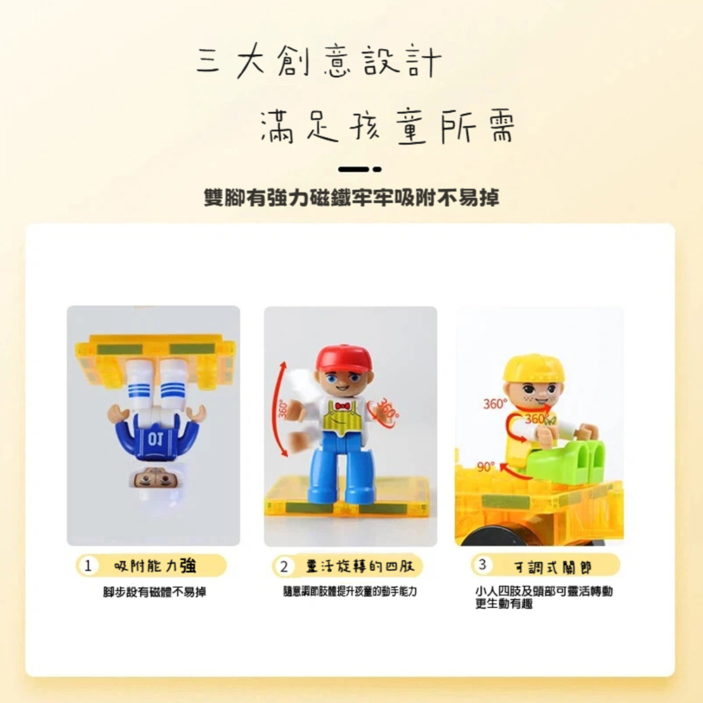 磁力人偶搭配磁力片,邊玩邊學,快樂加倍。