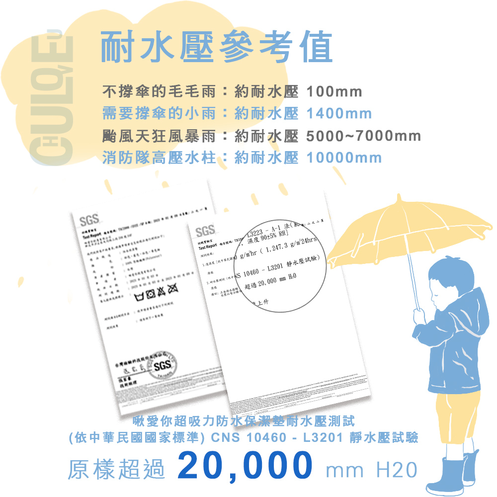 ★啾愛你超吸力超防水保潔墊★可耐水壓 > 20,000 mm H20
