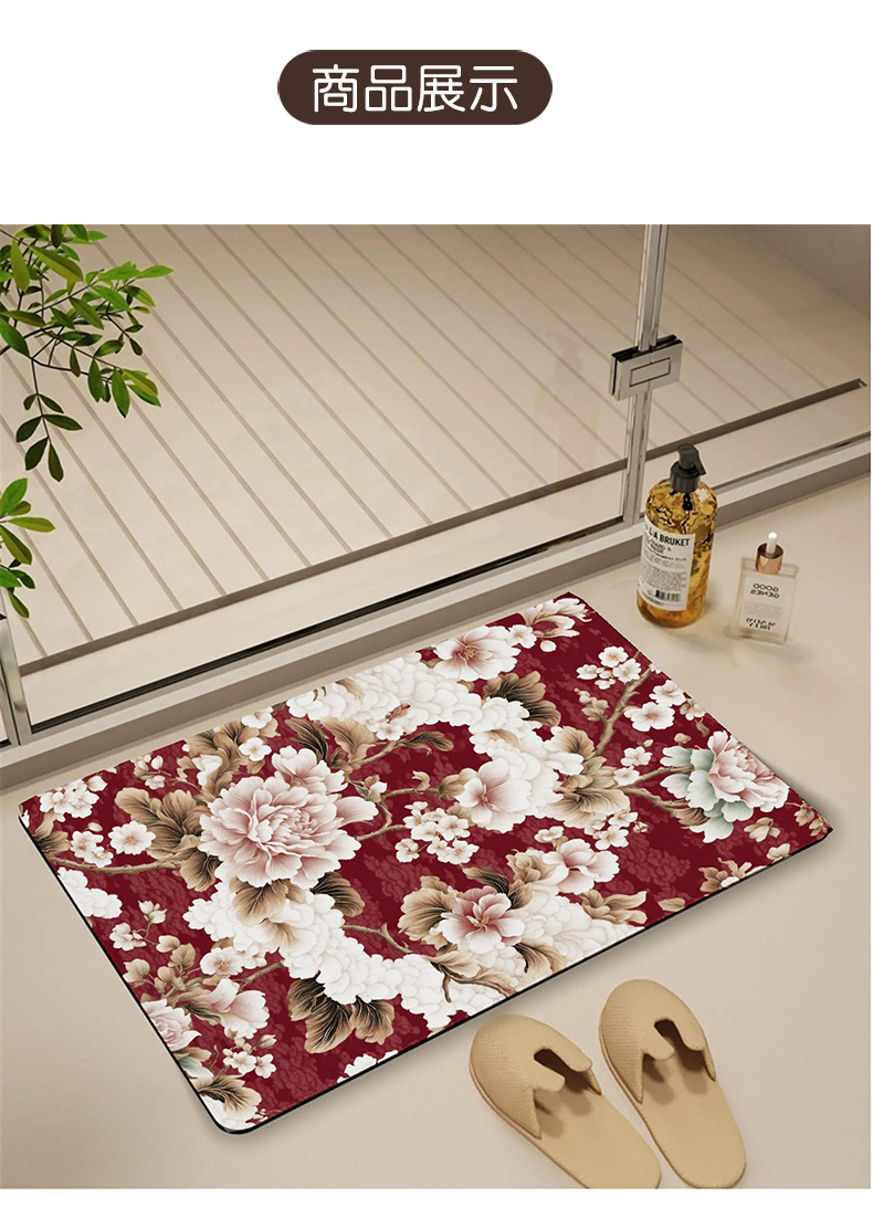 喵到寶 奈米絨面軟式硅藻土吸水止滑地墊-花開富貴