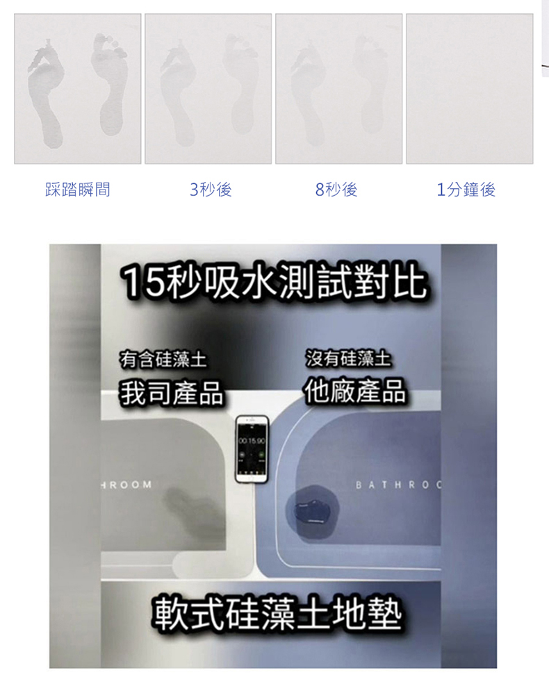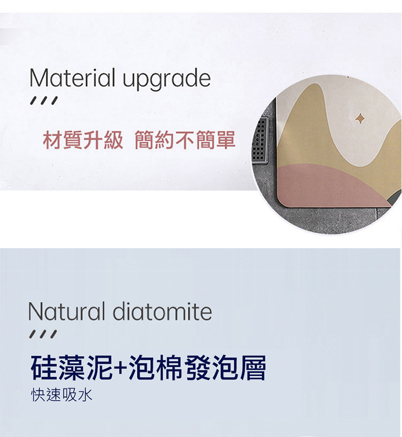 正面材質:奈米吸水纖維層+硅藻泥泡棉