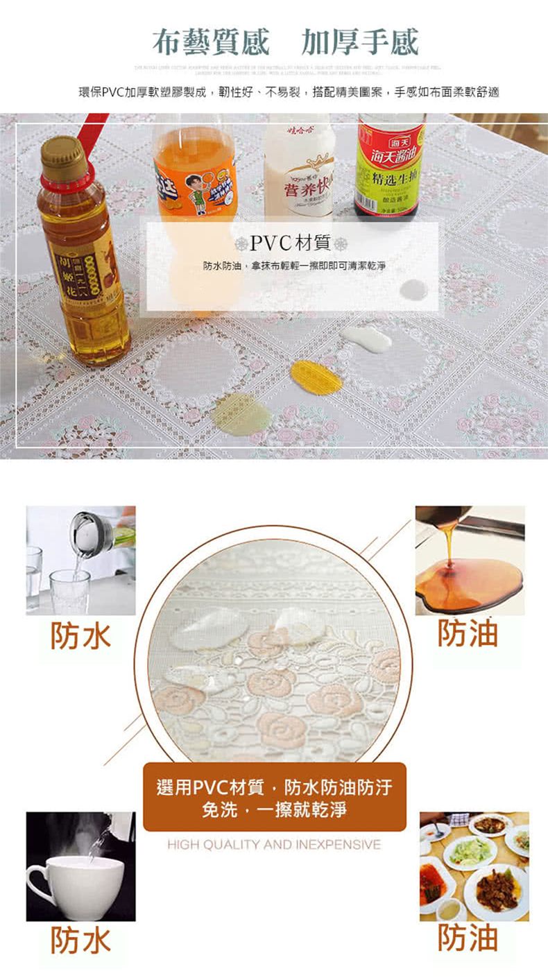 [喵到寶] 防水防油桌巾系列-長方桌會議桌135X180cm-米底咖啡花
