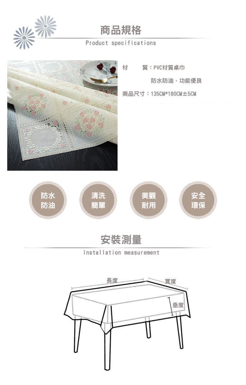 [喵到寶] 防水防油桌巾系列-長方桌會議桌135X180cm-米底小紅花