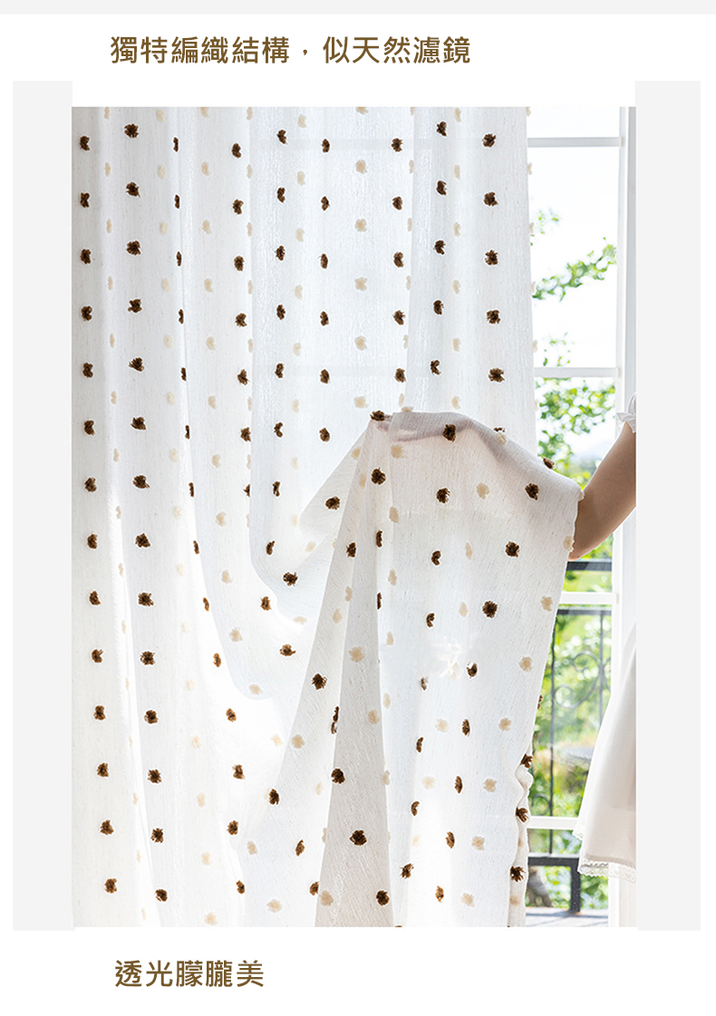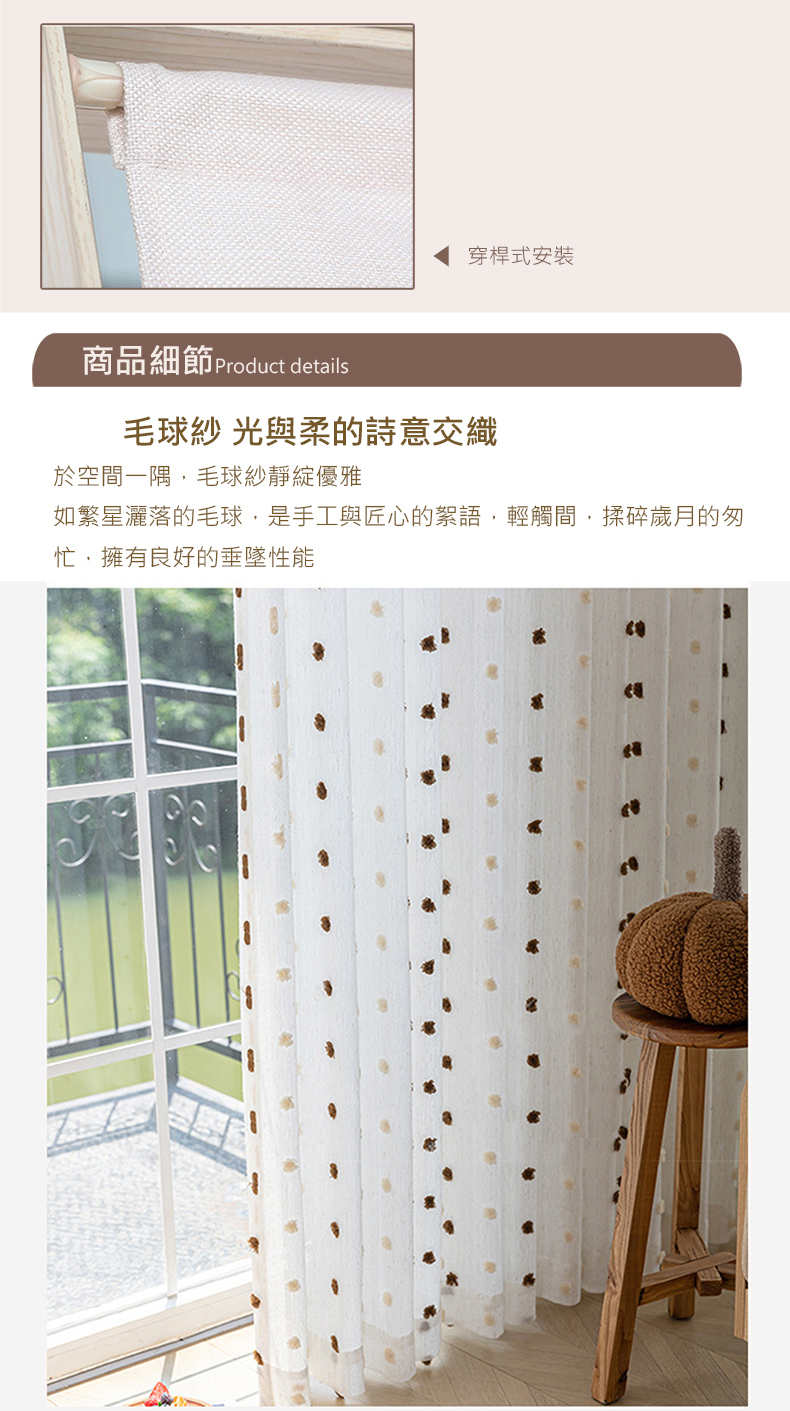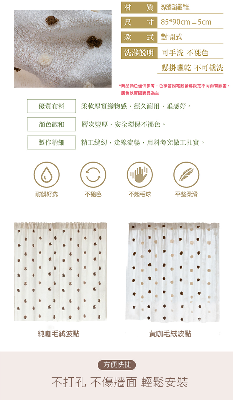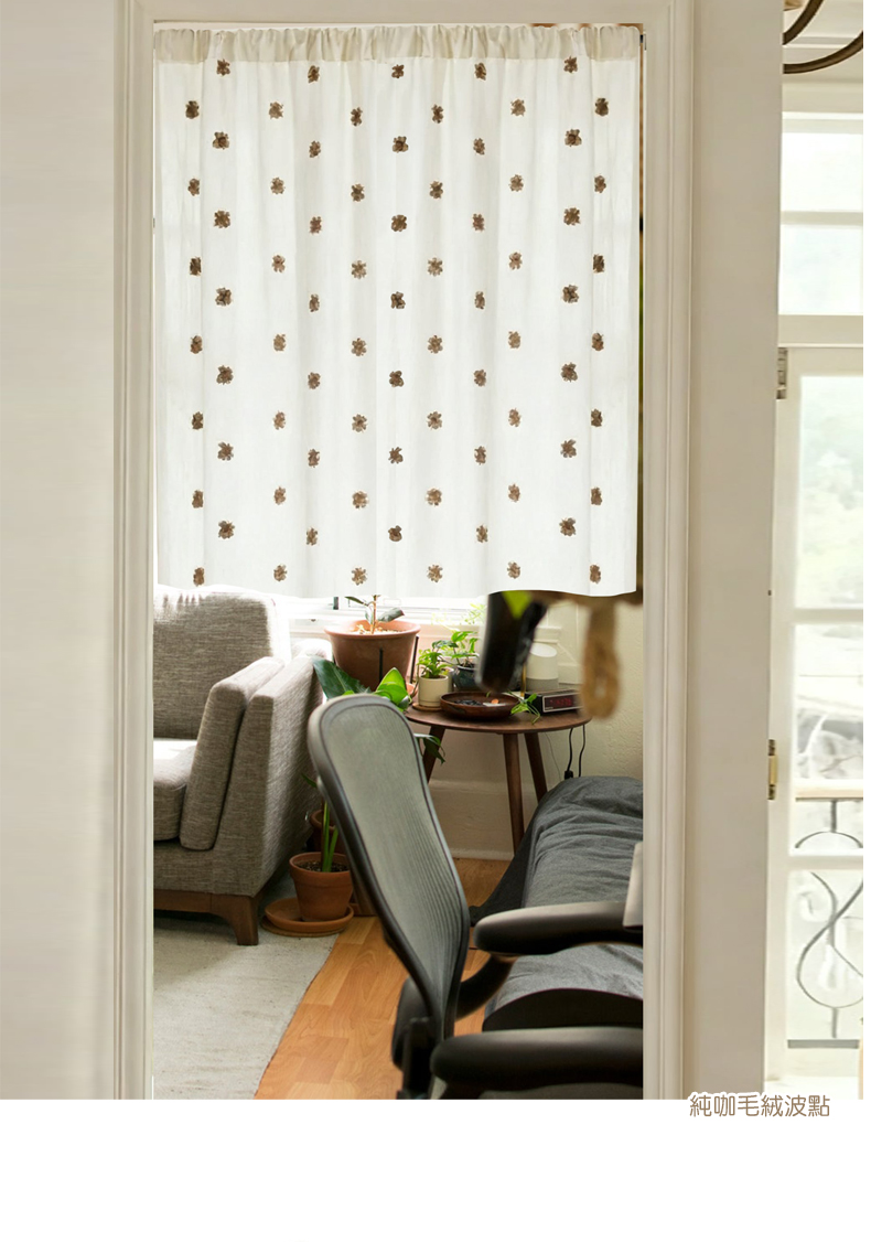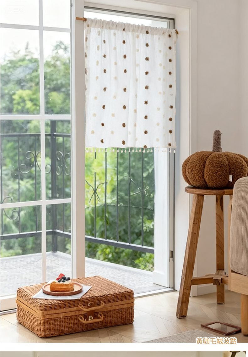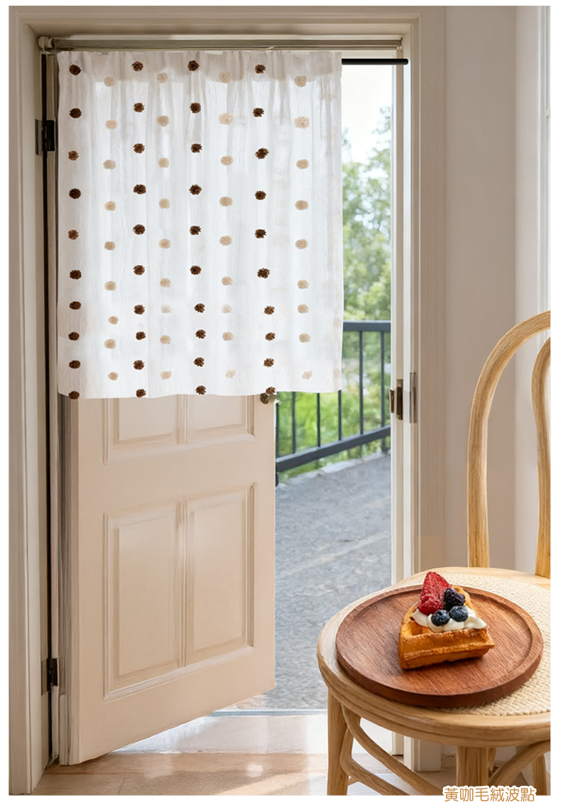 [喵到寶] 透光不透人毛絨波點門簾85*90cm送門簾桿(門簾/長門簾/隔簾/穿桿窗簾/短簾/咖啡簾)