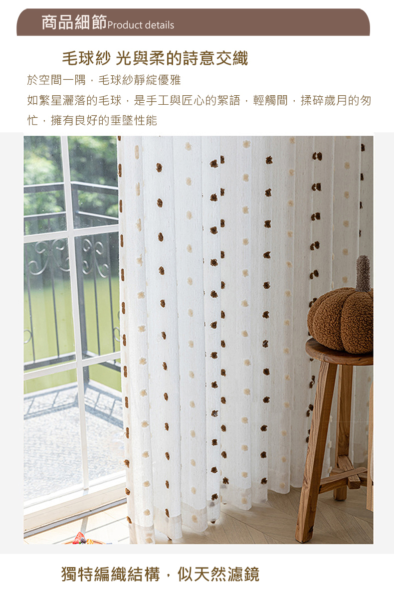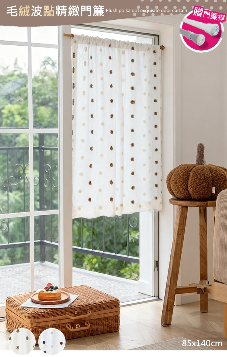[喵到寶] 透光不透人 毛絨波點門簾85*140cm送門簾桿(門簾/長門簾/隔簾/穿桿窗簾/短簾/咖啡簾)