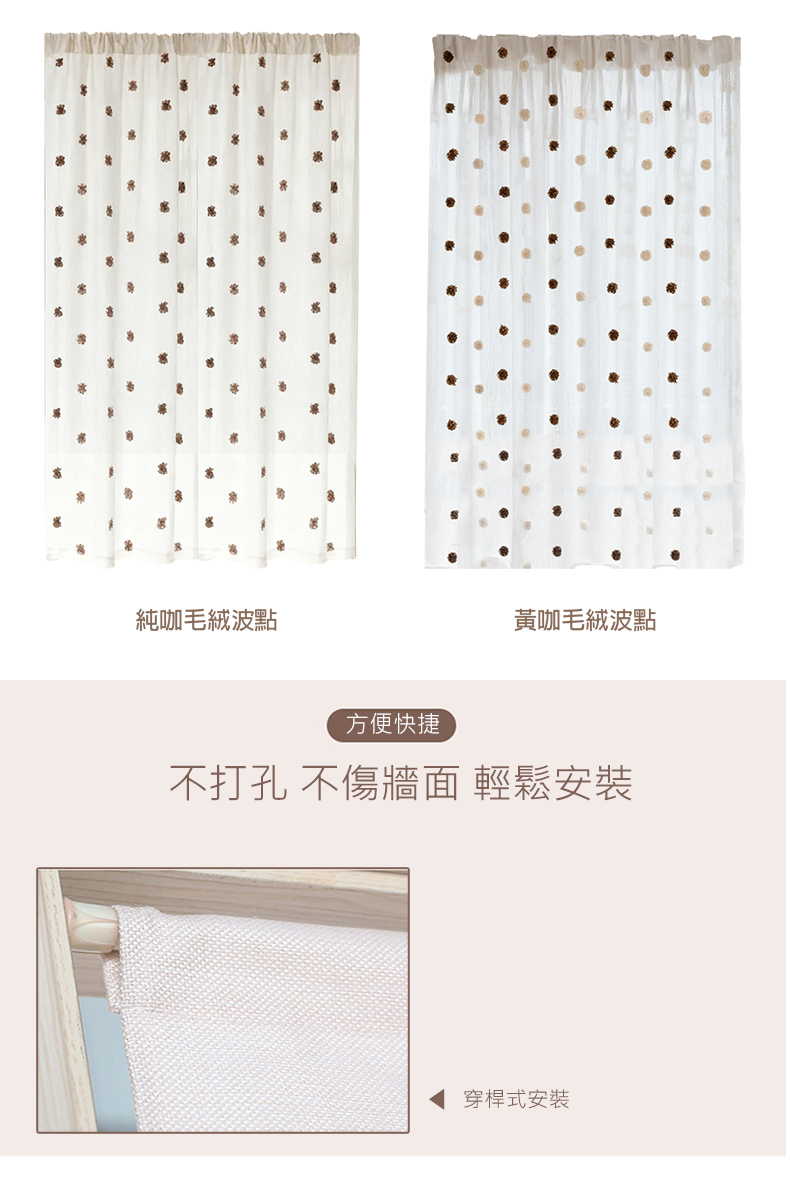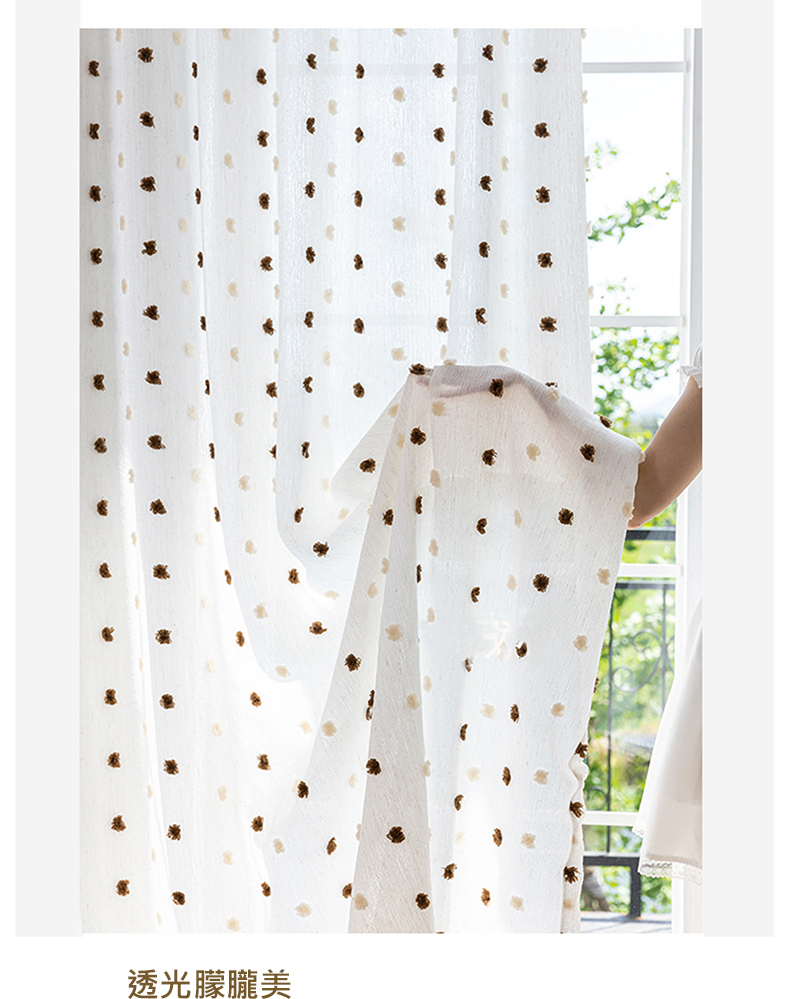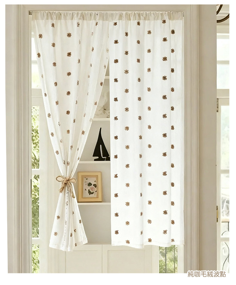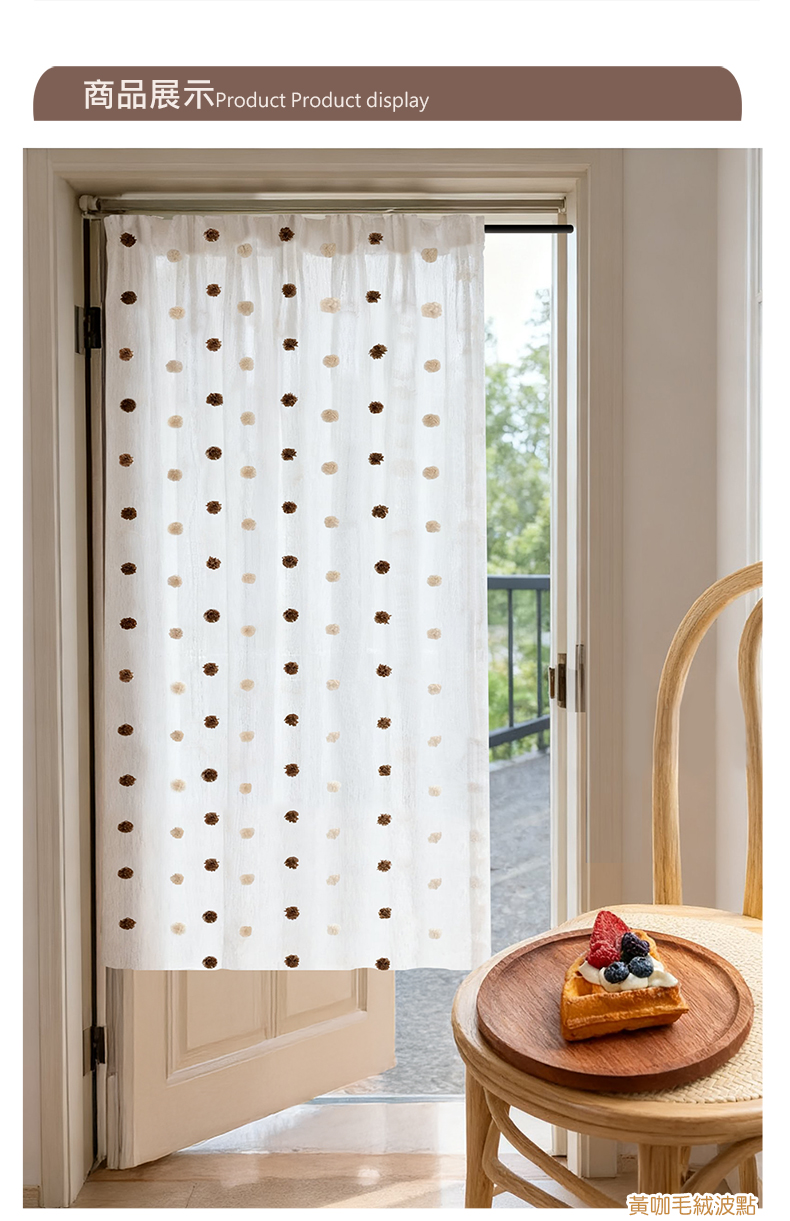 [喵到寶] 透光不透人毛絨波點門簾85*90cm送門簾桿(門簾/長門簾/隔簾/穿桿窗簾/短簾/咖啡簾)