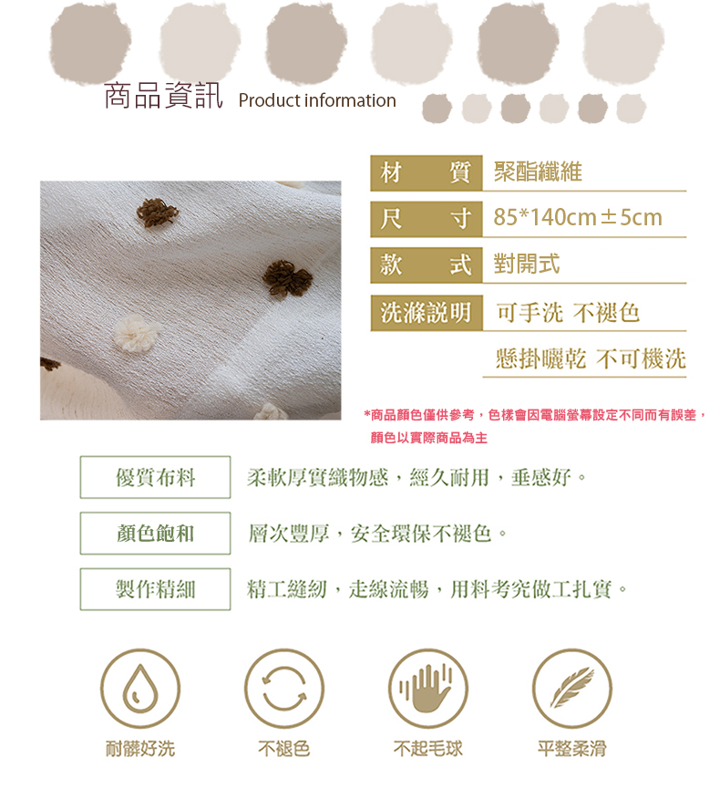 )保養方式―可水洗、可乾洗、不可漂白、不可烘乾