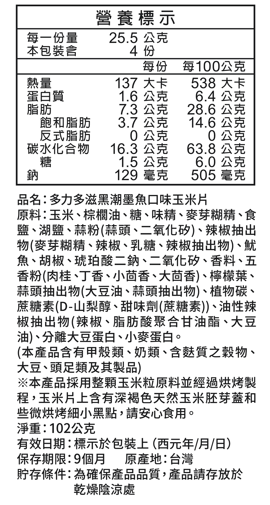 ◎品牌:多力多滋 ◎規格: 102g克 x 1 x 1Bag包