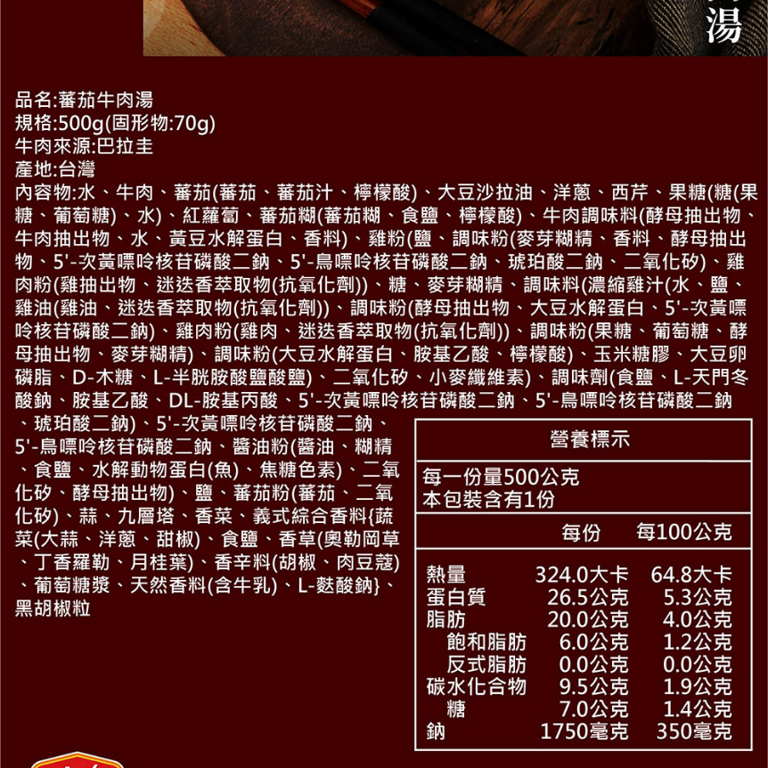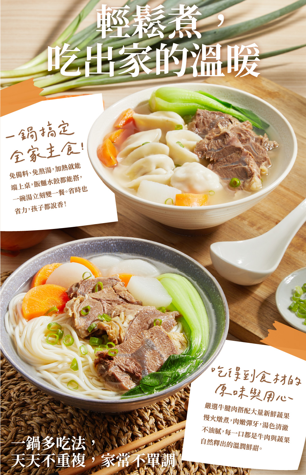 ●輕鬆煮出家的溫暖●製程細分五十多道職人工法●嚴選牛腱肉搭配大量新鮮蔬果