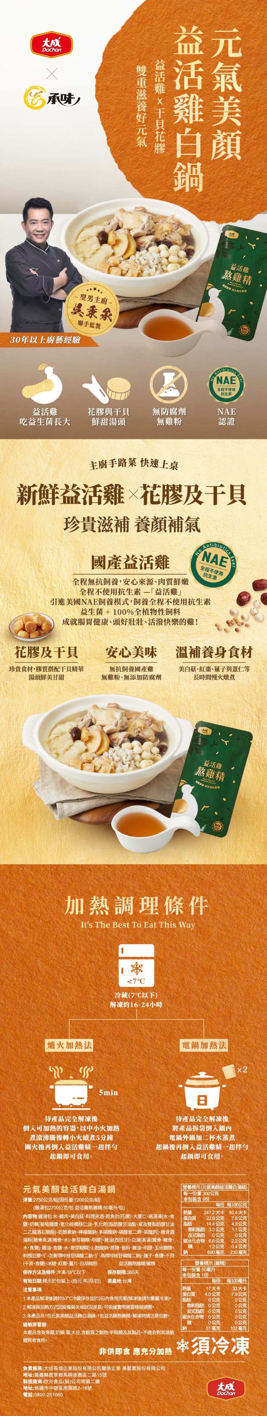 【大成食品】2026金馬年菜-★吳秉承★元氣美顏益活雞白鍋禮盒(2750g/組,固形量1200g)*
