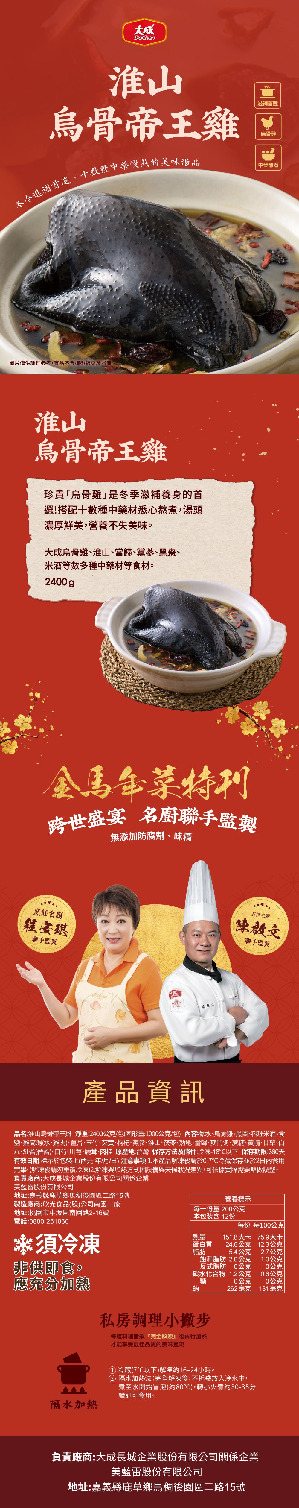 【大成食品】2026金馬年菜-淮山烏骨帝王雞(2400g/包,固形物1000g)