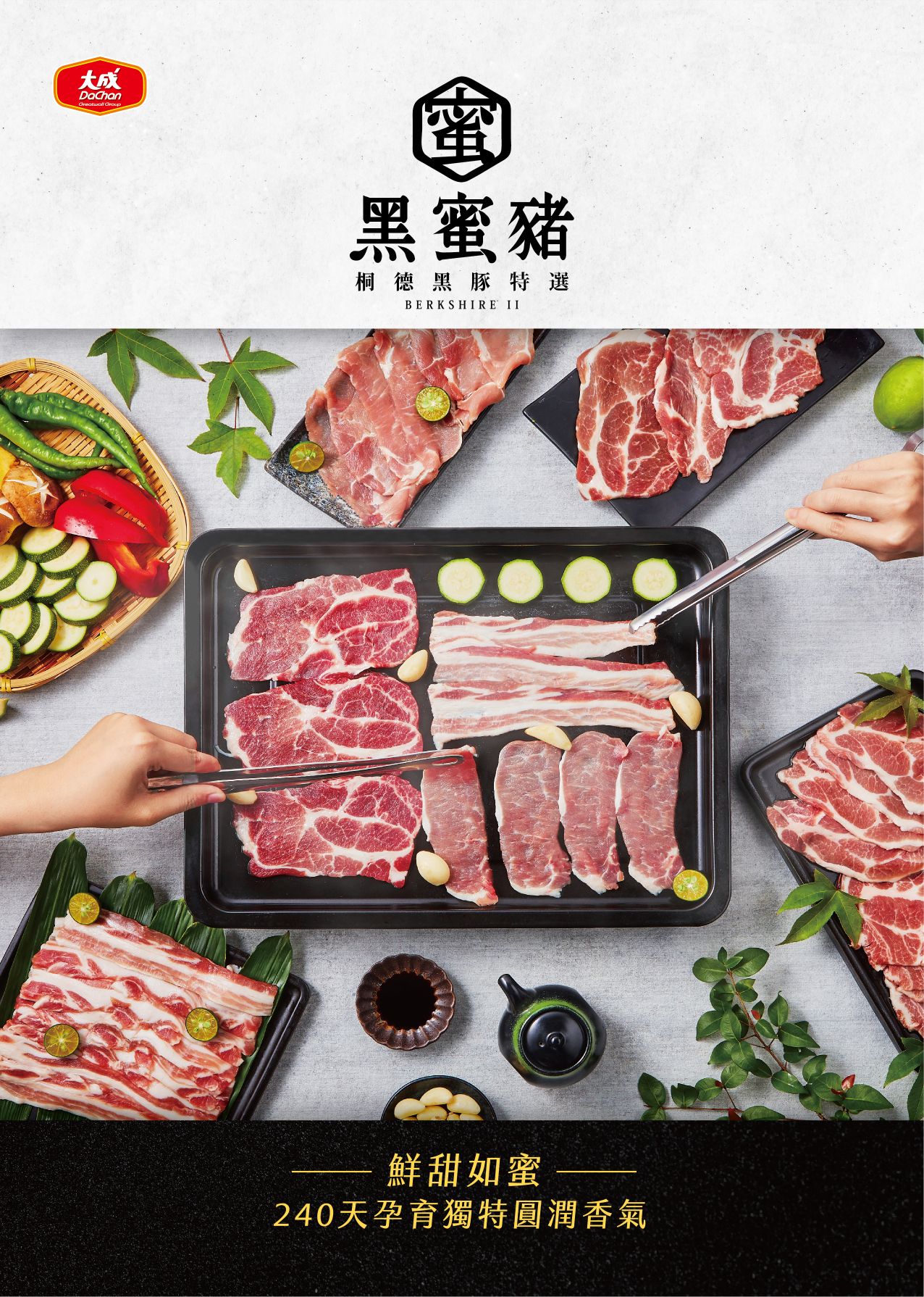 ●大成培育100%純種盤克夏黑豚,與日本鹿兒島黑豚同種源●養足240天熟齡●台灣在地精心飼養,不使用生長激素、瘦肉精●獨特黑豚油脂香氣,霜降油花黃金比例,纖維細緻入口即化
