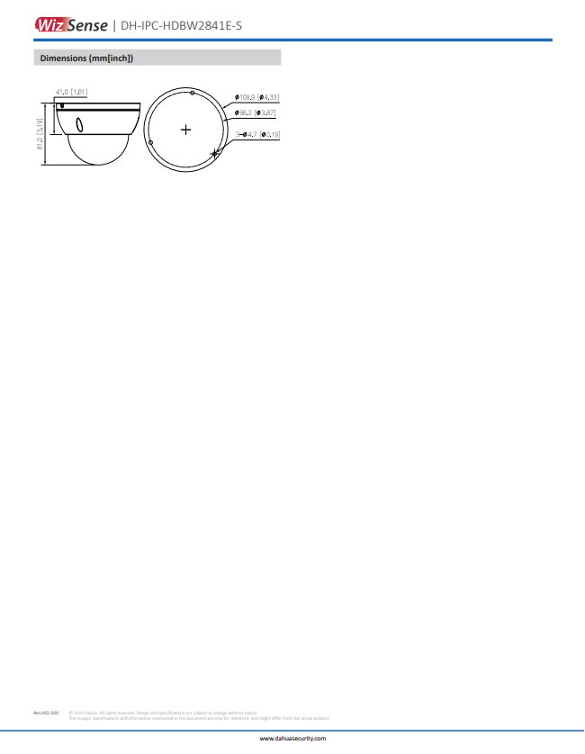 昌運監視器 大華 DH-IPC-HDBW2841E-S 800萬畫素 8MP紅外線定焦半球型網路攝影機 紅外線30公尺
