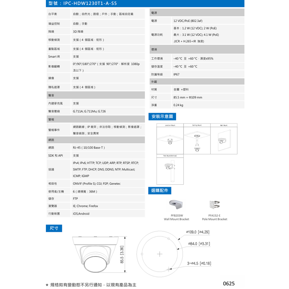 -內建麥克風,12 VDC/PoE供電,IP67防護等級