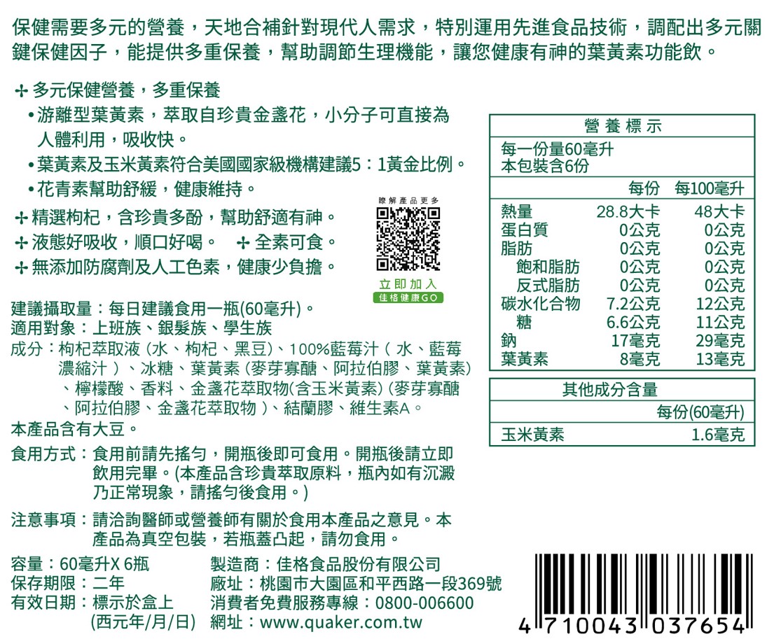 天地合補葉黃素功能飲60mlx6