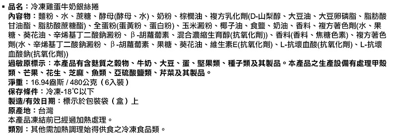 冷凍雞蛋牛奶銀絲卷(蛋奶素)