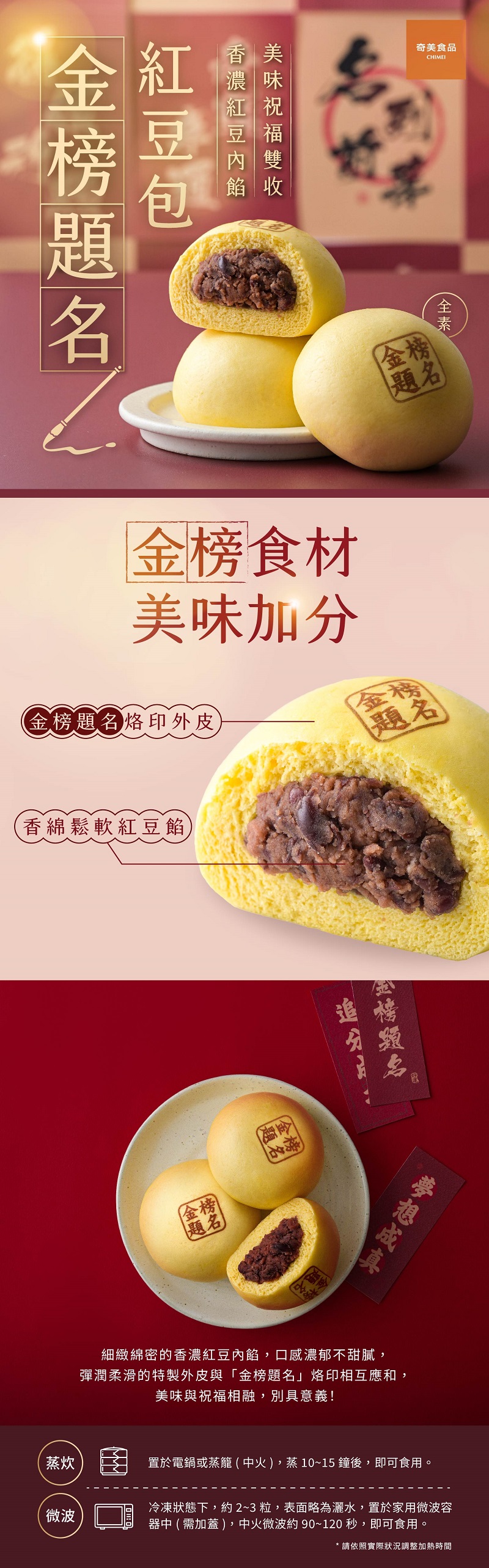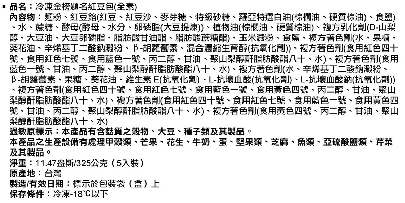 奇美冷凍金榜題名紅豆包(全素)