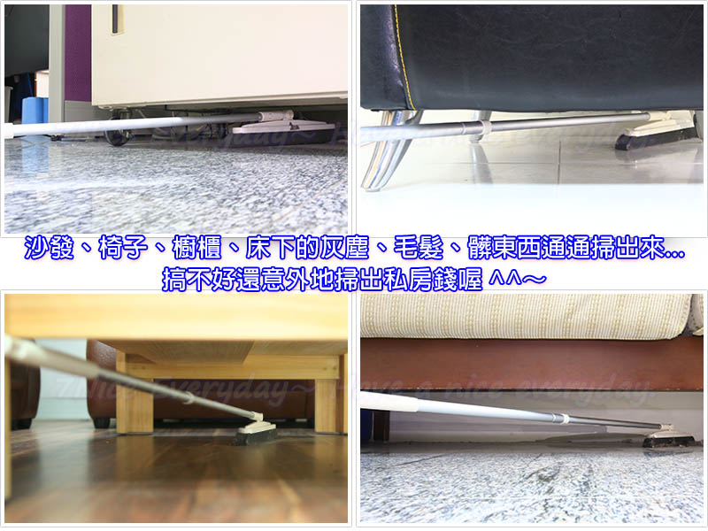 1.輕盈易掃,除塵力高達99%,毛髮落塵輕鬆掃。2.輕巧便利,清潔不費力。3.兩截式伸縮握桿可依個人需求調整至最佳使用長度。4.超靜電更具吸附力,細菌灰塵全部掃淨。5.絕不傷地板,更不塵揚的最好效果。6.可深入到桌椅、沙發下,清潔無死角。