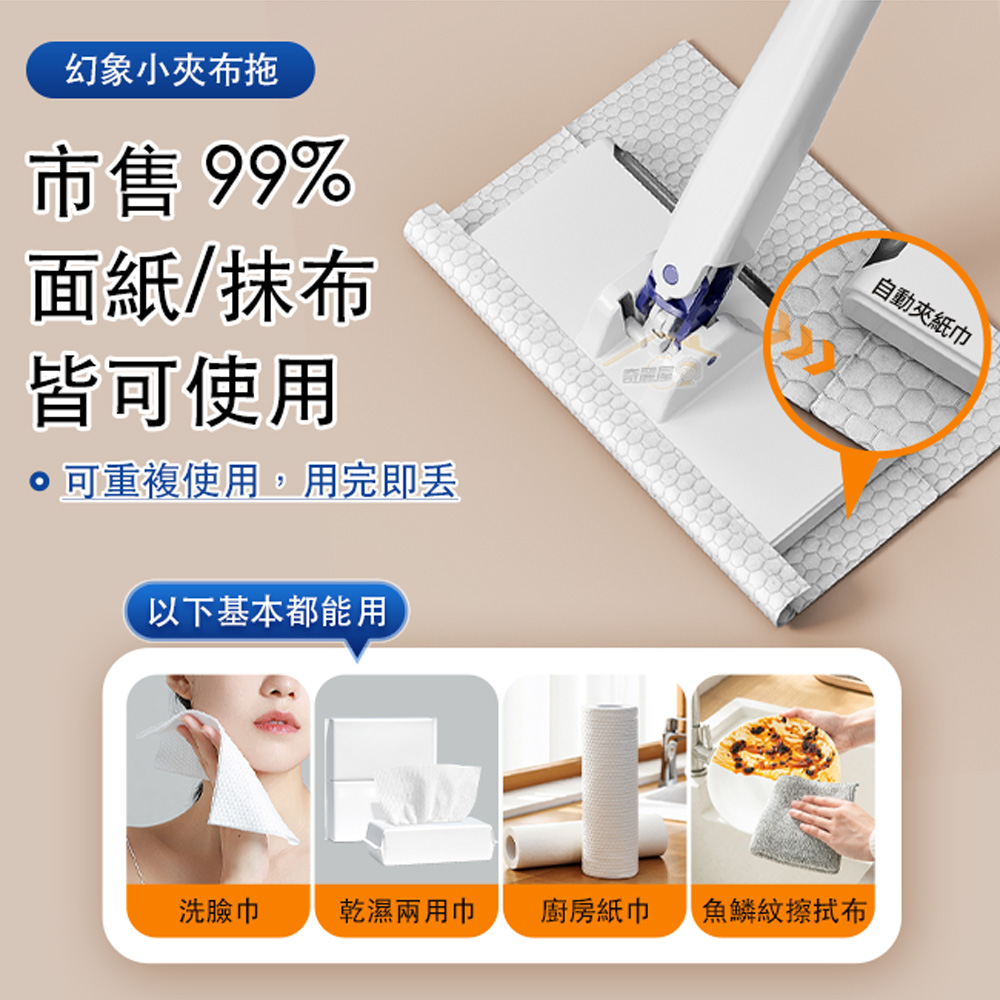 [奇麗屋]幻象小夾布拖-加長桿