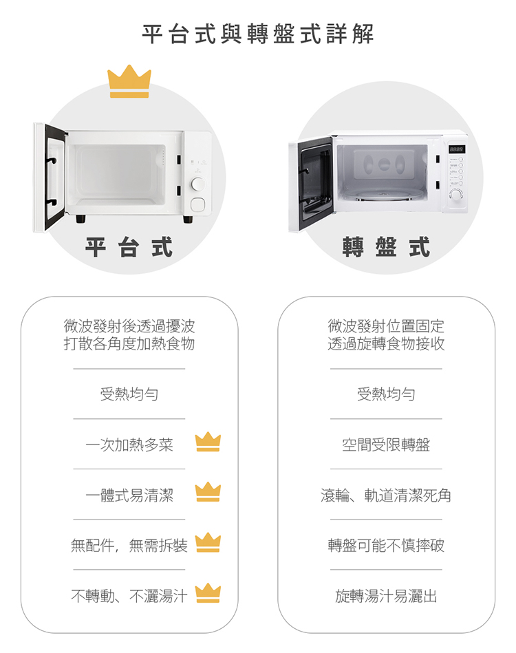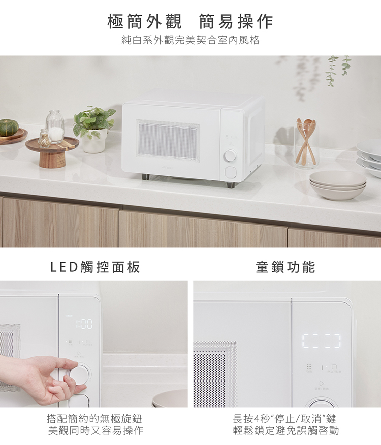 【商品特色】 ● 平台式設計,易清潔 ● LED觸控面板,好操作 ● 內槽使用空間加大40% ● 700W大火力均勻加熱 ● 加熱、烹調、解凍功能 ● 8種烹調菜單,6種自動模式 ● 開門即斷電,自動待機模式 ● 60分鐘定時響鈴自動停止加熱 ● 側開門把方便取食 【商品規格】 品牌:ARTISAN 品名:20L微電腦平台式微波爐 型號:MW2003 電壓:110V 震盪頻率:2450MHz 額定功率:1100W 輸出功率:700W 機器尺寸:45x34x28cm 腔體尺寸:28x30x20cm 重量:10.5kg 設計:台灣 產地:中國 配件:說明書(含保卡) 保固:主機1年保固(將發票或出貨單與保卡一起保留,視為購買憑證) 國際條碼:4713294770684 商品驗證識別碼:T3D016