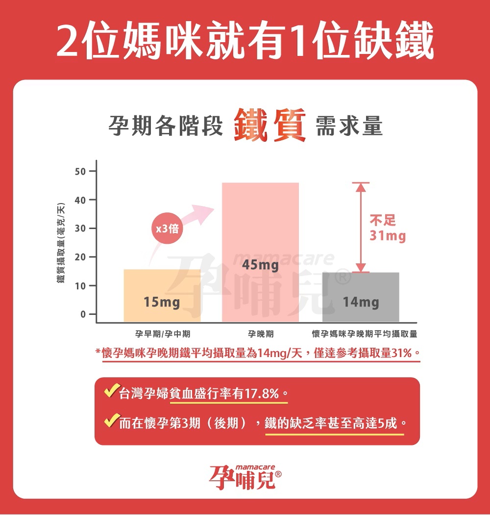 孕哺兒Ⓡ高單位凍晶鐵+葉酸 膠囊,『懷孕期、哺乳期孕婦專用』高劑量凍晶鐵劑,採用吸收率最高的血紅素鐵+甘胺酸亞鐵為主要來源,好吸收不易產生一般鐵劑造成的胃部不適,是缺鐵孕哺媽咪必備滋補營養品!貼心提醒媽咪,生產時會流失大量血液,鐵是構成血紅素的重要成分,可提早用凍晶鐵為生產做最佳準備。主要成分:澱粉、凍晶血紅素鐵(ヘム鉄)、甘胺酸亞鐵、 維生素C、菸鹼酸、泛酸、維生素E、維生素B6、維生素B2、維生素B1、葉酸、生物素、維生素B12、膠囊規格容量:劑型:膠囊。內容量:60粒、150粒。食用建議:◆懷孕期、哺乳期:毎日1粒。◆成人:毎日1粒。◆1粒含鐵量約18毫克。◆一日輛請勿超過2粒,多食無益。注意事項:◆非素食。◆本產品含有牛奶製品,不適合其過敏體質者食用。