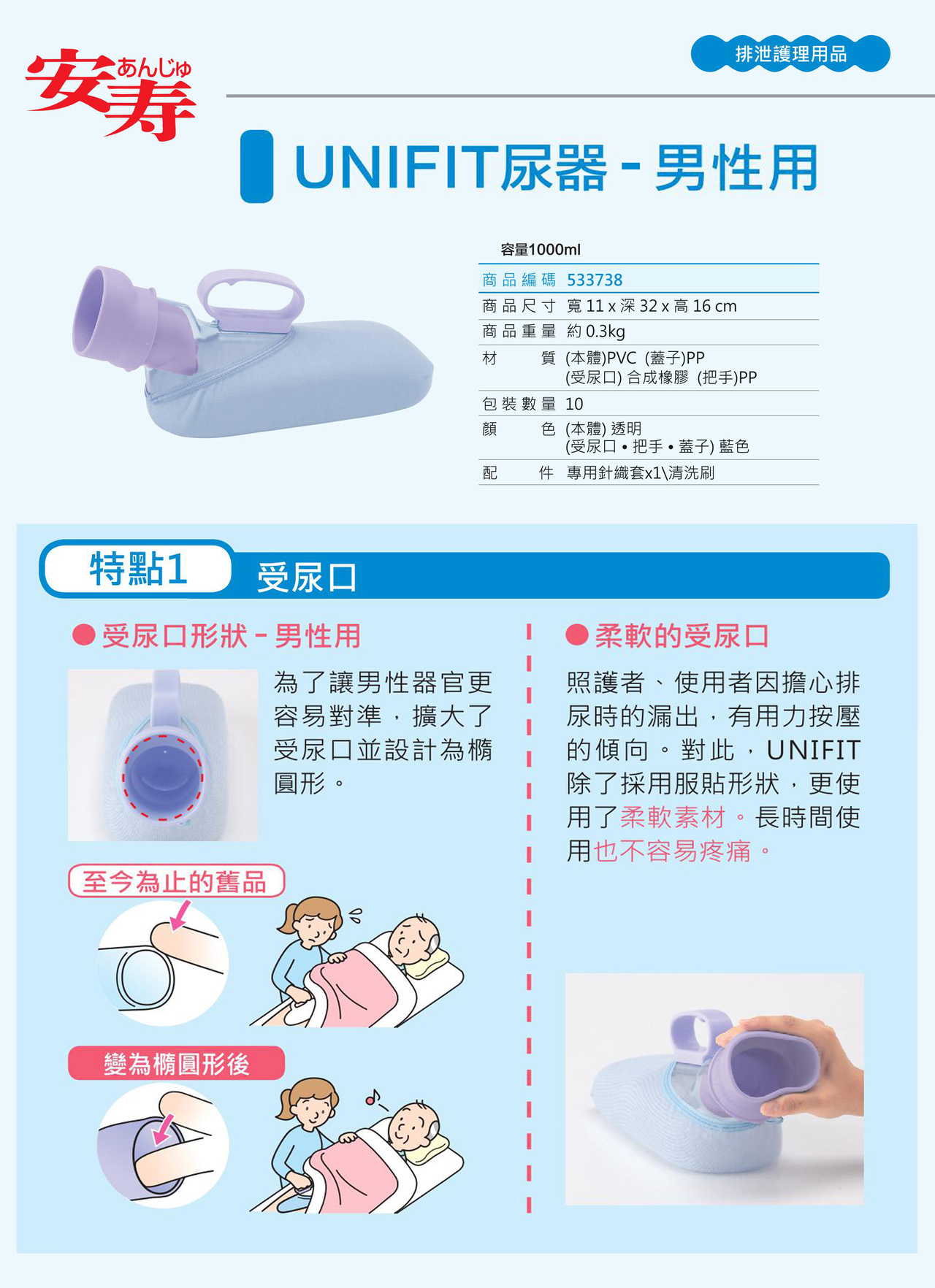 【福樂多】安壽 男用集尿器|行動不便 臥床的男性能自行手持完成排尿