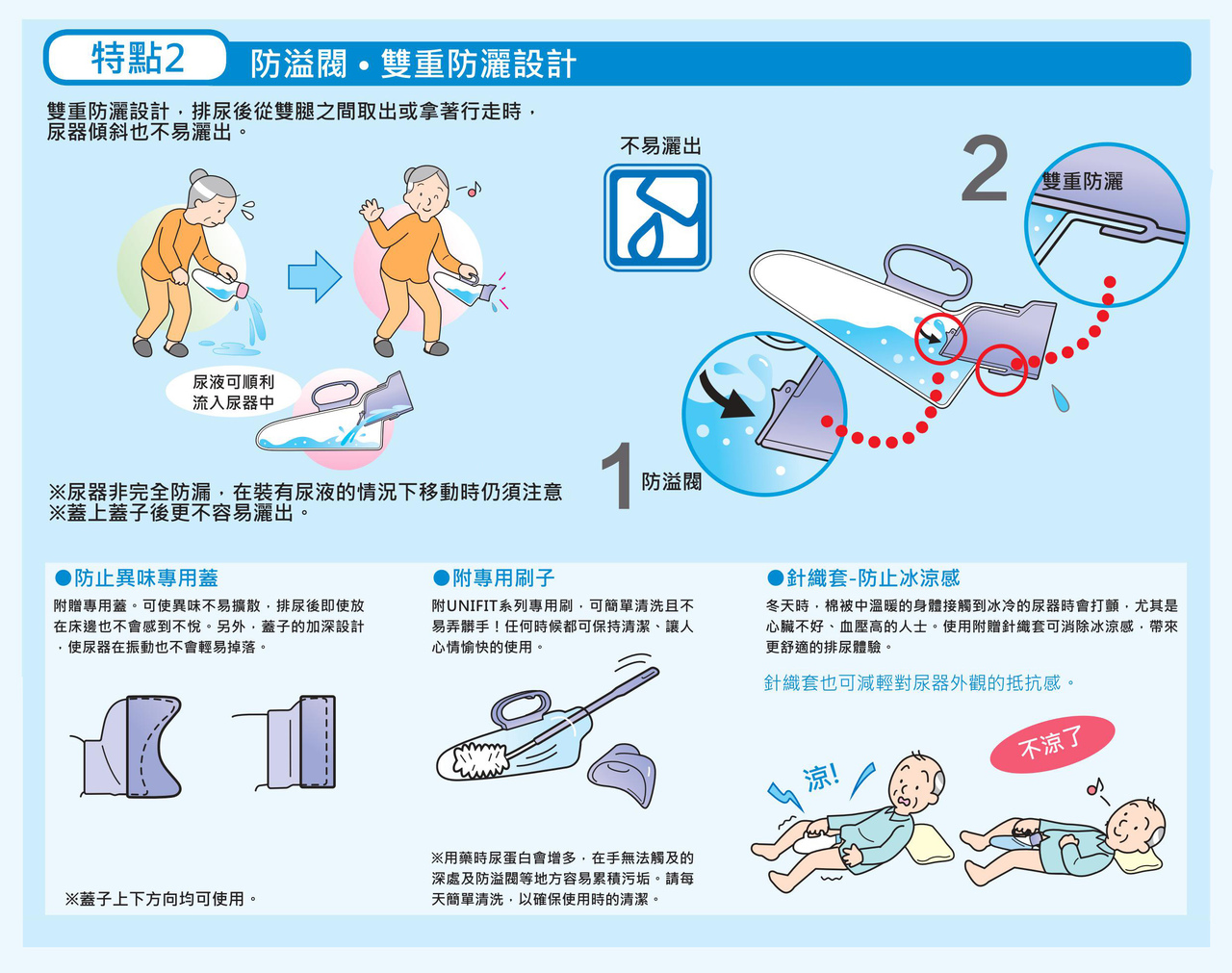 ● 顏色:本體-透明、受尿口/把手/蓋子-藍色
