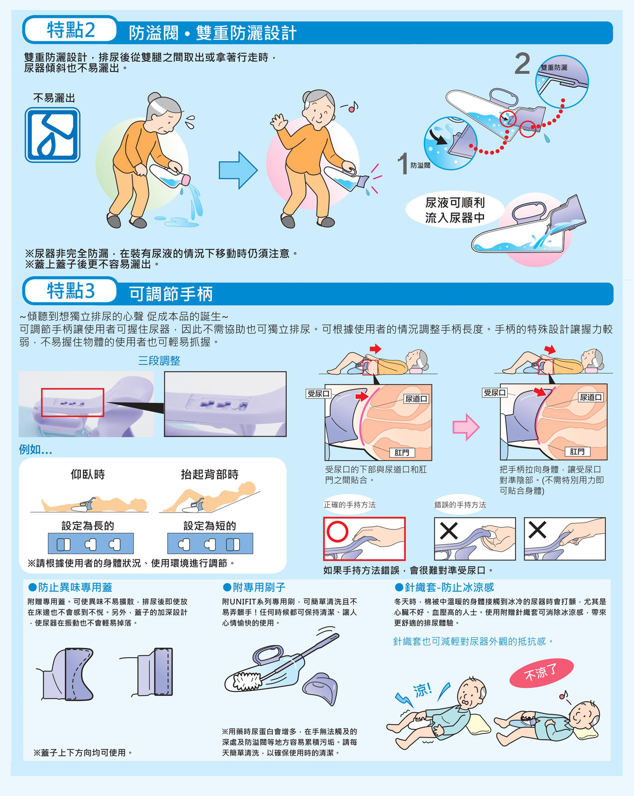 ● 材質:本體PVC、蓋子PP、受尿口-合成橡膠、把手PP、可調節手柄PP