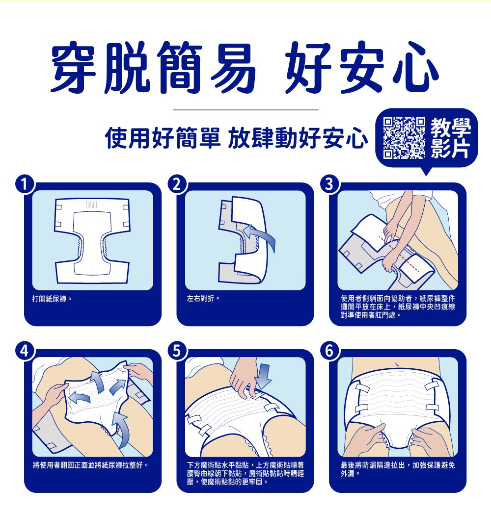 ※使用後請將尿褲上的排泄物,倒入馬桶清理後,將髒汙部份由外側向內側捲起,再行丟棄。