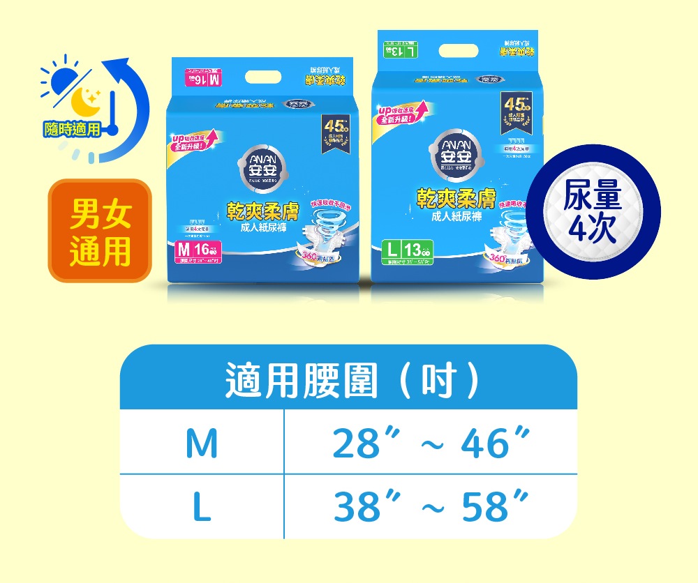 [安安]乾爽柔膚型 成人紙尿褲M號(16片x6包/箱)