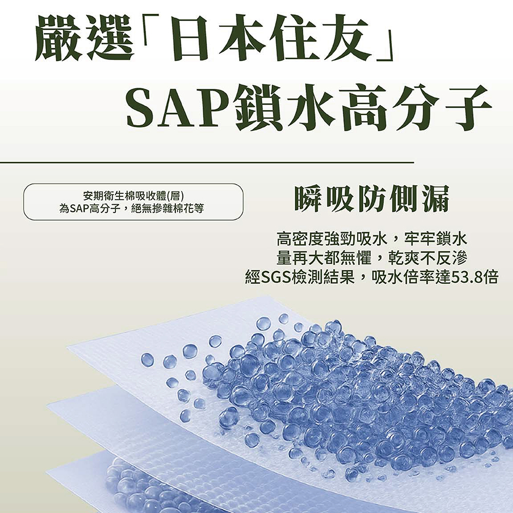 ★ 頂級進口原料:採用日本住友吸收芯、美國Domtar木漿、德國漢高黏合膠與韓國曉星密氫纖維。
