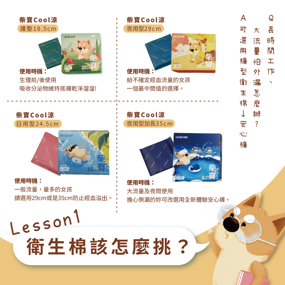 ◎商品名稱 : 【安期】柴寶Cool涼 衛生棉 | 夜用型◎商品規格 : 29.0 cm | 10片裝◎包裝尺寸 : 13.0 x 8.0 x 11.0 公分◎商品成分 : 無紡布、無塵紙、薄荷芯片、SAP複合紙、透氣底膜、背膠、離型紙、鋁塑膜◎配方成分 : 薄荷醇(薄荷腦)、薄荷精油◎保存期限 : 三年(製造日期標示於外包裝)◎產地 : 中國 (為宜宭自營工廠生產,無委託它廠代工)◎貨源 : 公司貨---------------------------------------------------◎商品名稱 : 【安期】柴寶Cool涼 衛生棉 | 夜用加長型◎商品規格 : 35.0 cm | 6片裝◎包裝尺寸 : 13.0 x 5.0 x 13.5 公分◎商品成分 : 無紡布、無塵紙、薄荷芯片、SAP複合紙、透氣底膜、背膠、離型紙、鋁塑膜◎配方成分 : 薄荷醇(薄荷腦)、薄荷精油◎保存期限 : 三年(製造日期標示於外包裝)◎產地 : 中國 (為宜宭自營工廠生產,無委託它廠代工)◎貨源 : 公司貨---------------------------------------------------◎商品名稱:【安期】柴寶泡泡-褲型衛生棉(M-L)◎商品規格:M-L | 臀圍 80-105 cm | 1片裝 ◎包裝尺寸:19.0 x 18.0 x 1.0 公分◎商品成分:輕柔無紡布、複合芯體、PE透氣膜、密氨綸、泡泡腰圍◎保存期限:三年(製造日期標示於外包裝)◎產地:中國 (為宜宭自營工廠生產,無委託它廠代工)◎貨源:公司貨---------------------------------------------------◎商品特色24.5cm以上衛生棉可吸收最少100mL水分選用獨立包裝,輕巧便攜,不占用空間清新薄荷香氣,有效擺脫惱人經血異味輕薄柔軟面層,親膚貼合私密肌零摩擦導流溝槽設計,均勻且快速吸水不回滲呼吸底膜材質,極薄透氣排走悶溼黏膩☆注意事項☆1.收到包裹時,開箱請錄影,若商品數量有誤請立即聯繫客服人員。2.宜宭提供完善的售後服務,若寄出商品與您訂購商品項目不符或是有破壞、瑕疵等情形,請於收到產品七天內與宜宭客服聯繫,將由專人為您服務!3.依照消費者保護法規定,「鑑賞期並非同於試用期」,退回的商品必須為無拆封使用、全新且完整包裝(包含商品、贈品、商品明細、發票等),退回商品驗收無誤後,將由會計人員與您聯繫後續退款作業。4.超過消費者保護法推訂之15天鑑賞期之期效(取貨後隔日為第一天,往後推算15天),恕無法更換或是退貨,進請見諒。5.因本站販售商品為衛生用品,因考量衛生等因素,商品一經開封,恕無法辦理退換貨,敬請見諒。(外封膜一撕開,則為開封狀態)【客服聯絡資訊】服務時間:週一至週五 8:00 - 17:00聯絡電話:05-2650199