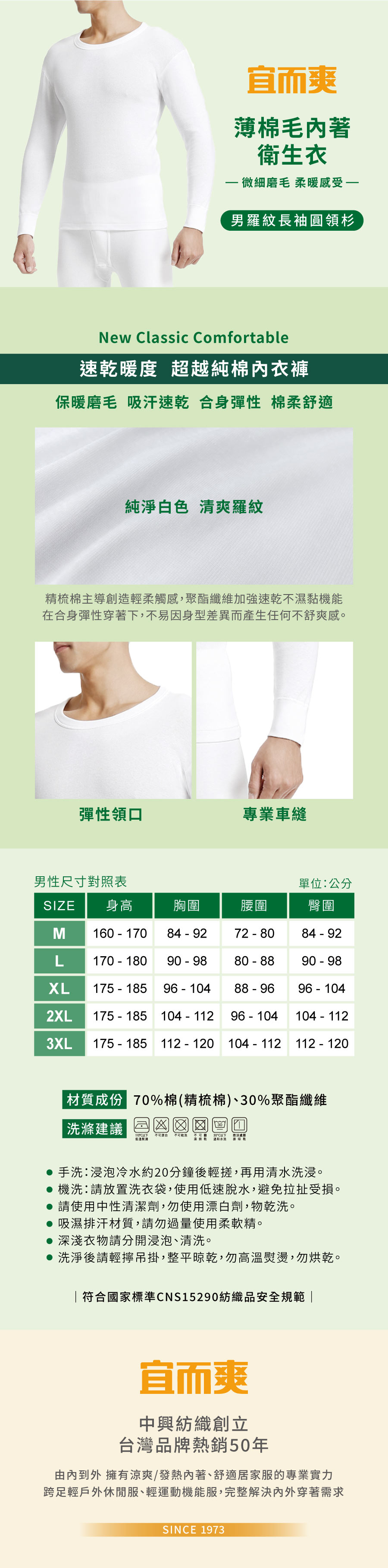 宜而爽薄棉毛男羅紋長袖圓領衫-XL