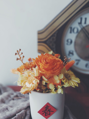 【Pola's Living】春暖花開乾燥盆花花禮/橘黃