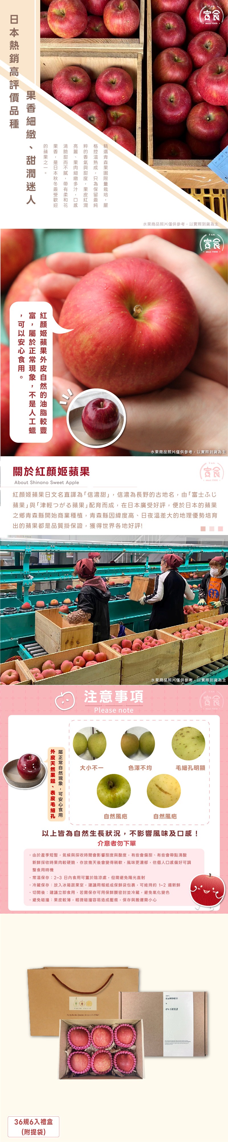 【寅食3 a.m.】日本青森紅顏姬蘋果36規250g*6入禮盒(附提袋)