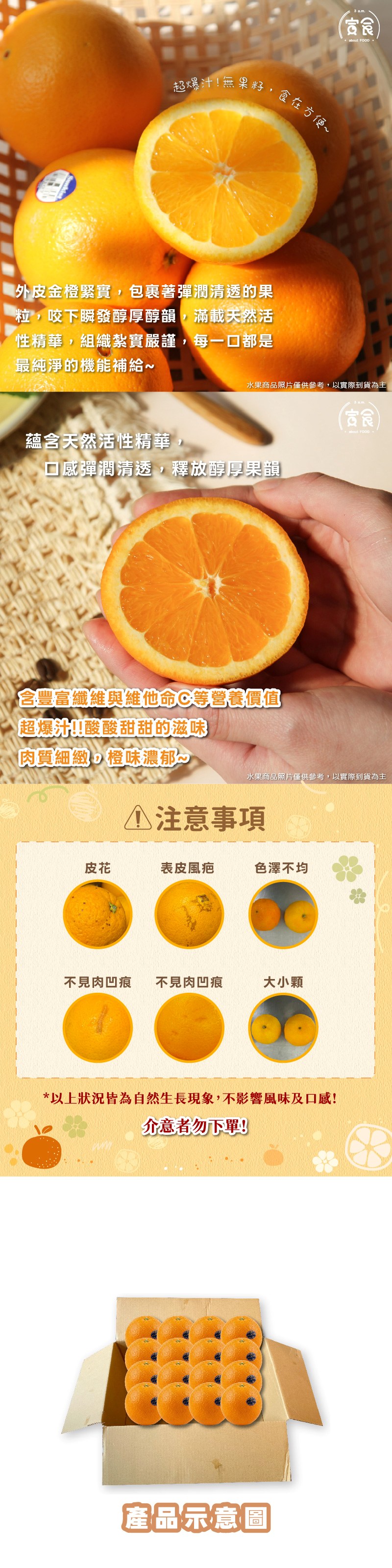 📝 2.農作物品項因以時令採收包裝為主,圖片僅供參考,實際以商品出貨為主,果皮表面有些許瑕疵屬正常現象,不影響內部水果品質與風味,請安心食用。