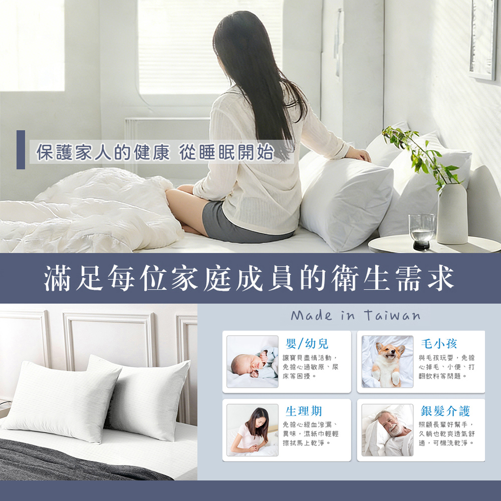 【寢室安居】護理級銀離子100%防水防蹣抗菌透氣保潔枕套-1對-深灰