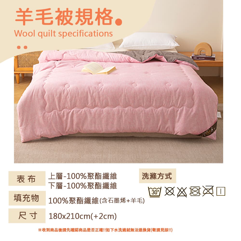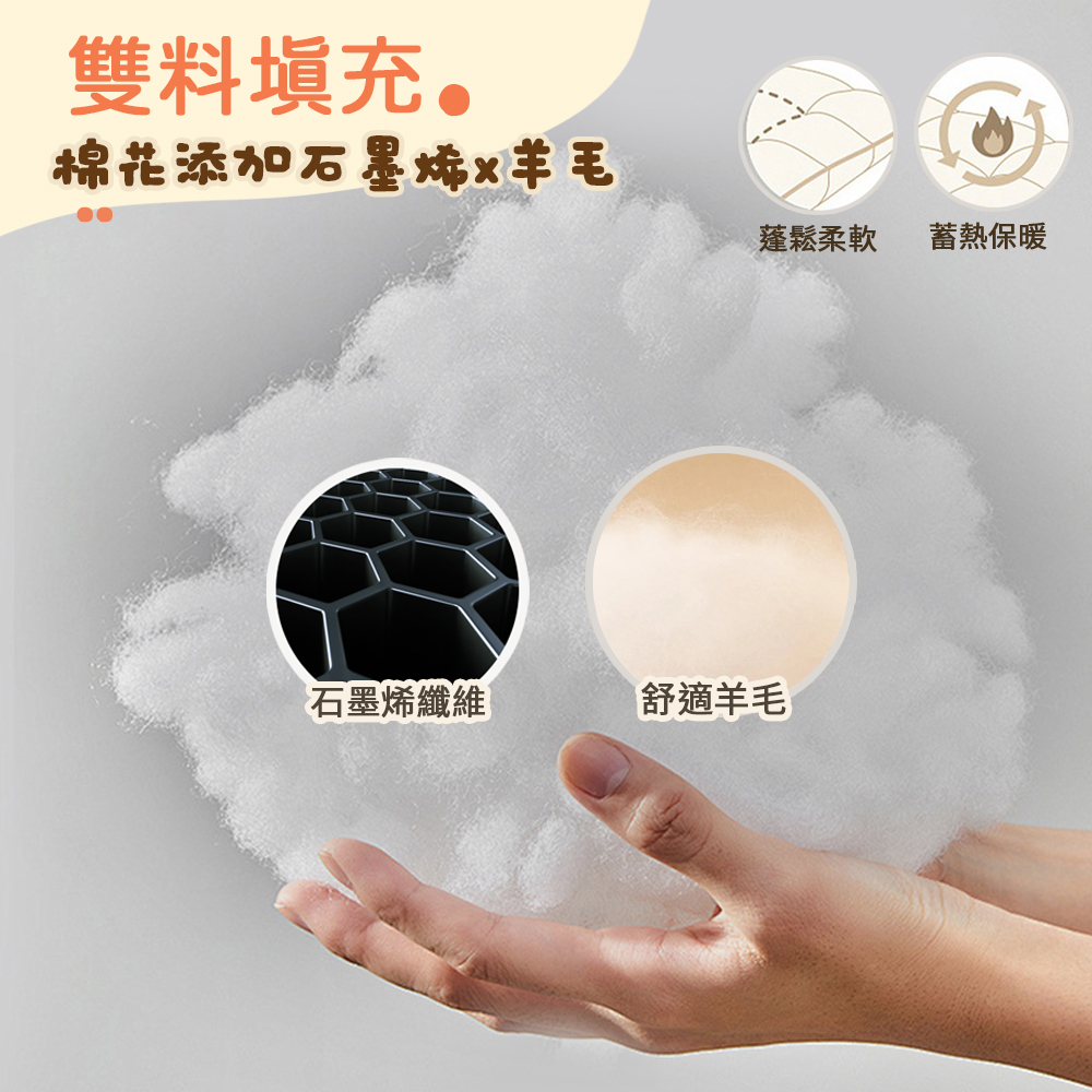 【石墨烯x羊毛 全方位溫暖舒適】● 雙效合一,蓄熱恆溫● 透氣吸濕,乾爽不悶熱● 升級工藝,可洗減少塵蟎附著【商品規格】尺寸:180x210CM (±2公分)