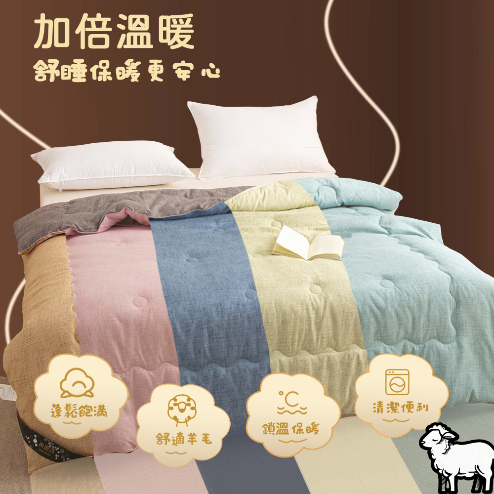 【寢室安居】健康暖芯撞色石墨烯羊毛被 冬被 2KG