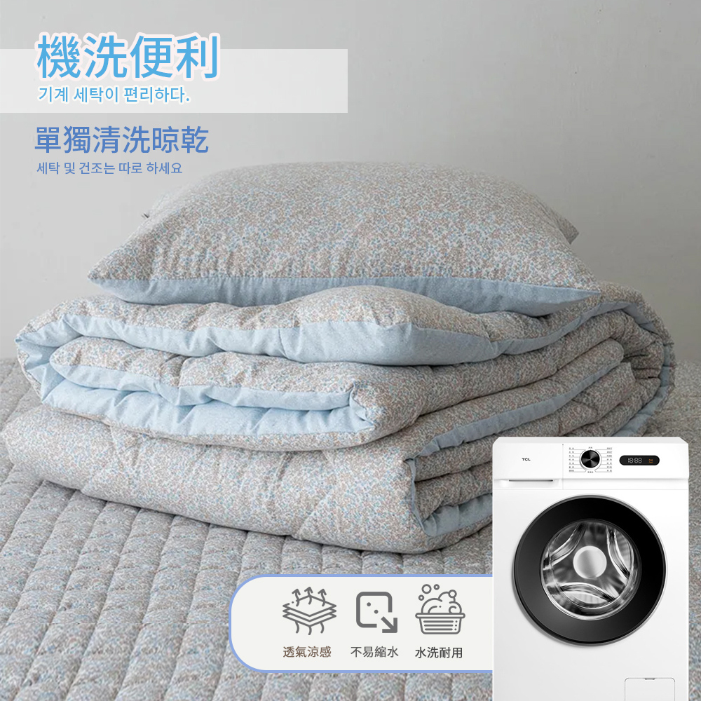 表布材質:聚酯纖維 (超細纖維100%)裡布材質:聚酯纖維 (超細纖維100%)填充物:聚酯纖纖維100%(玉米鬚纖維)尺寸/重量:150X205CM (±5cm)/1.7KG產地:韓國洗滌處理方式·水溫不可超過30*C/不可漂白/不可乾洗/不可烘乾/不可燙熨上述尺寸重量為人工測量±5%誤差值為正常範圍