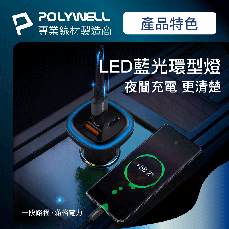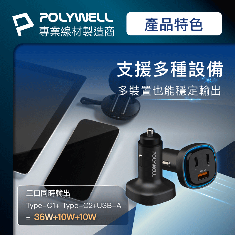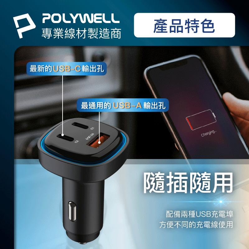 ◎ 產品: 66W車用快速充電器 (Type-Cx2+USB-A)