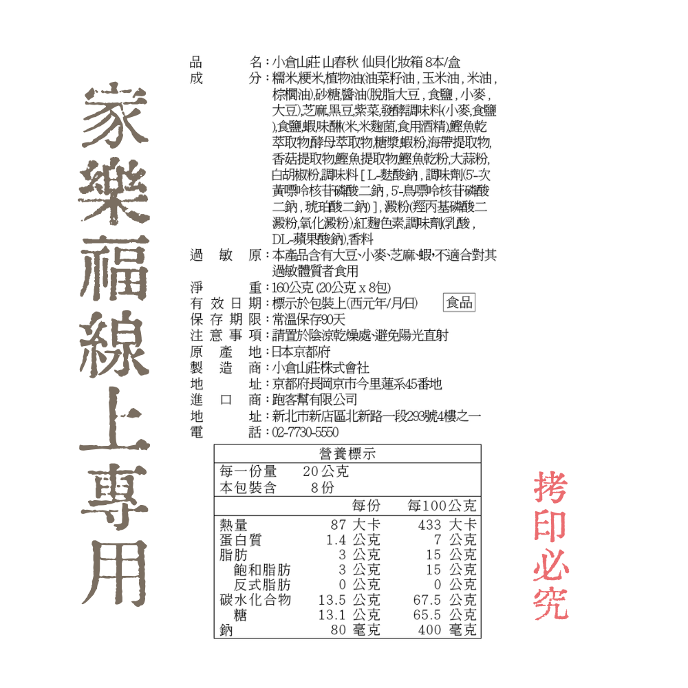 小倉山莊 山春秋 仙貝禮盒 8入/盒