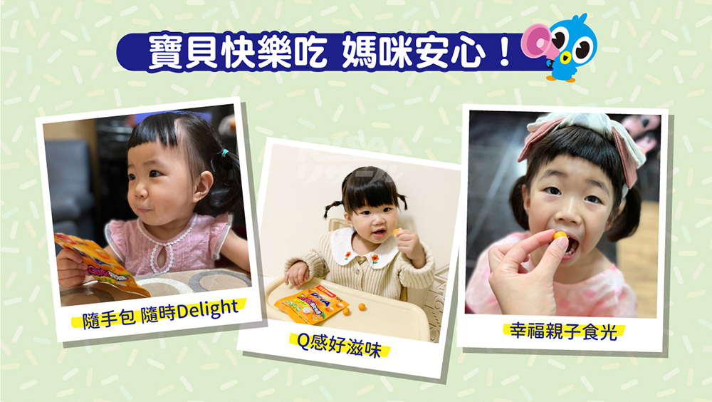 砂糖、麥芽糖、椰子油、明膠、柳橙濃縮汁、檸檬酸(調味劑)、DHA藻油(含DHA 35%)、香料、天然食用色素(薑黃色素、花青素)、棕櫚蠟(食品製造用劑)