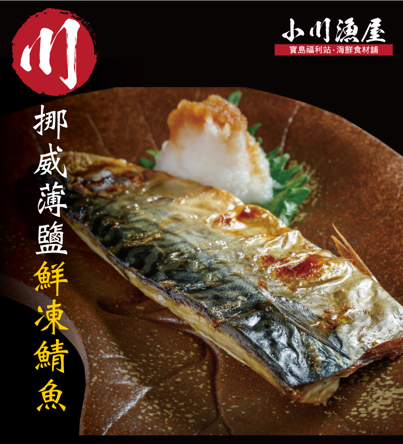 小川漁屋 野生挪威薄鹽鯖魚8片(100g±10%/片_純重無紙板)