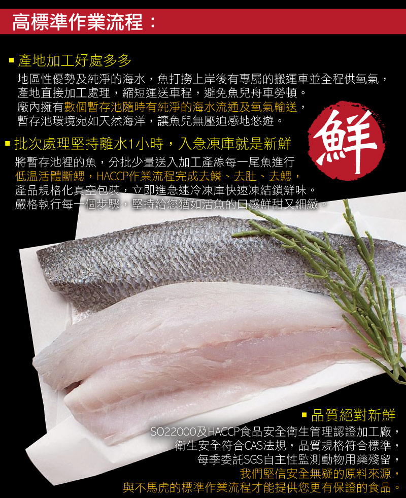 小川漁屋 台灣純海水低密度養殖鱸魚清肉排12片(100~200g/片)